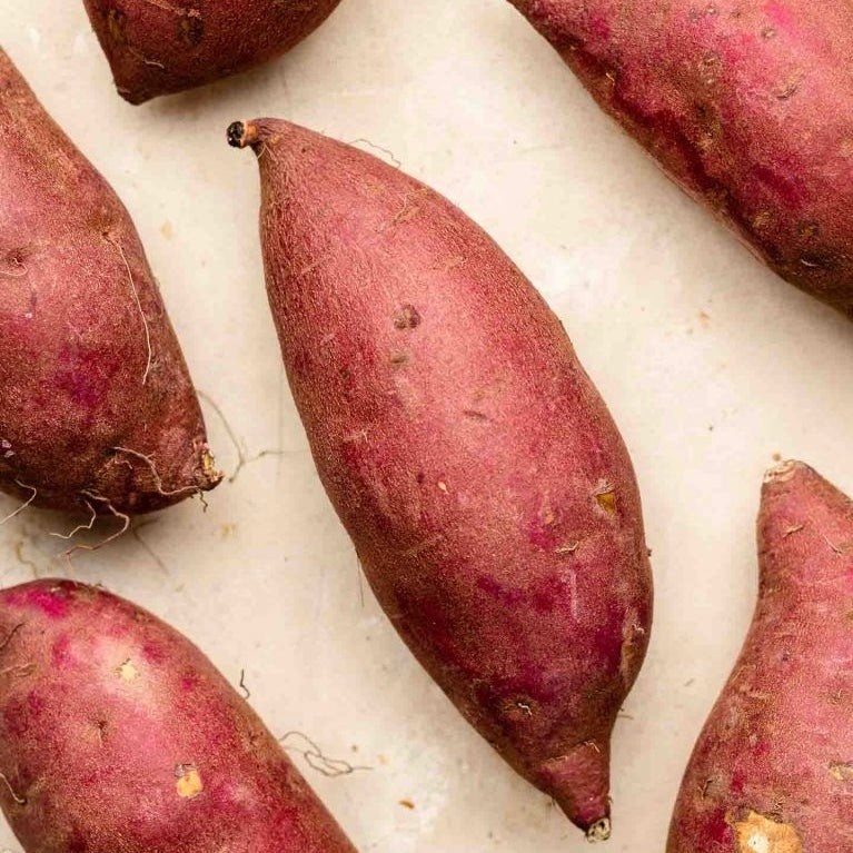 日本蜜薯(Japanese Sweet Potatoes)香甜绵密、自然蜜香——日本蜜薯以紫红色外皮与金黄色果肉闻名。烤熟或蒸熟后,内芯柔软细腻、带有焦糖般的甜香,让人一口爱上。